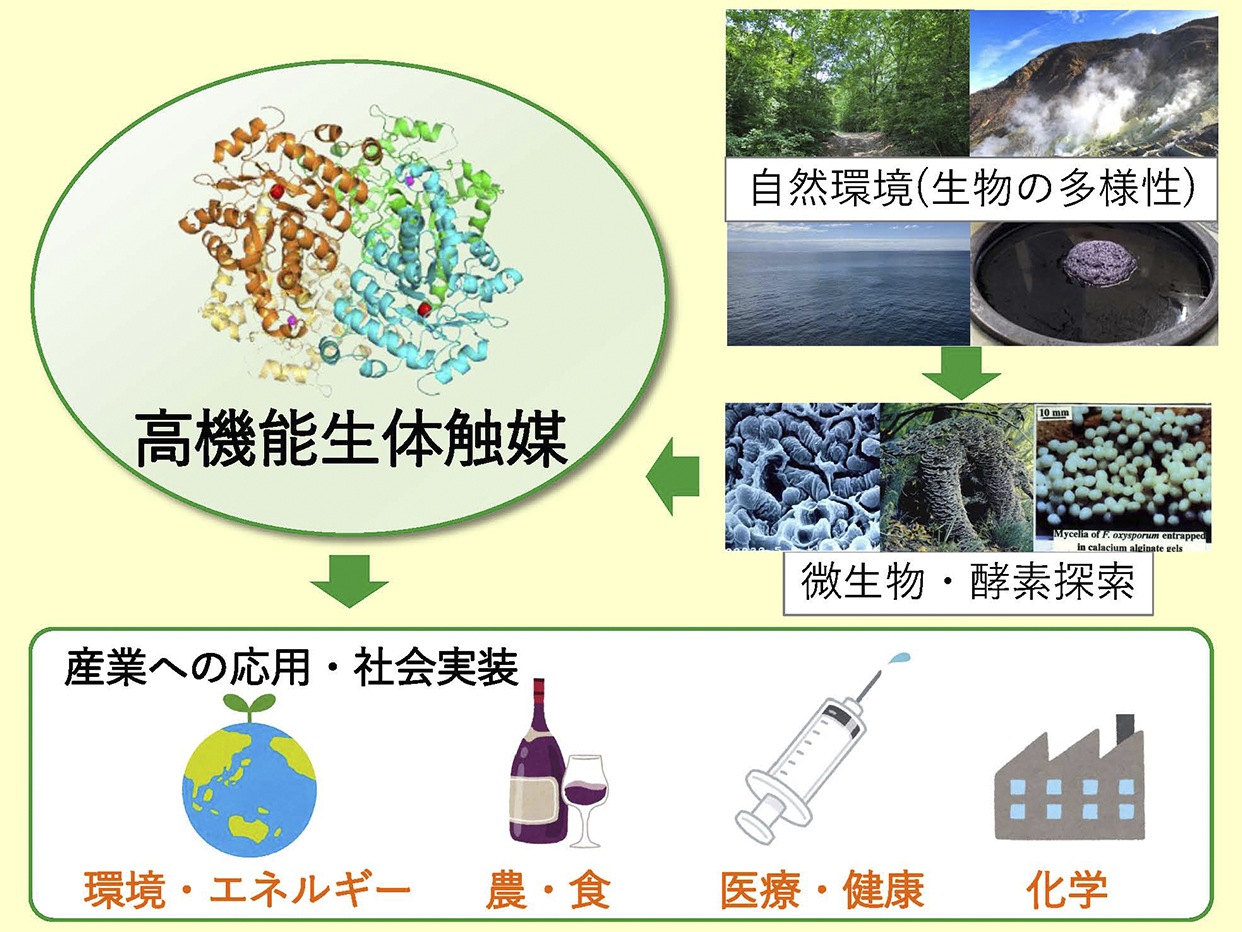 現在、温暖化や化石資源の枯渇、人口爆発による食糧難など地球規模の課題が持ち上がっています。そのため、自然環境への負荷を小さくしながら食糧やエネルギーを確保する持続可能型社会の構築が求められています。このような課題を解決していくためには、さまざまな生物が持つ生命機能の共通性・多様性を解明し、高度に利用することが重要となります。したがって、様々な専門分野の研究者の協力・連携が必要不可欠です。